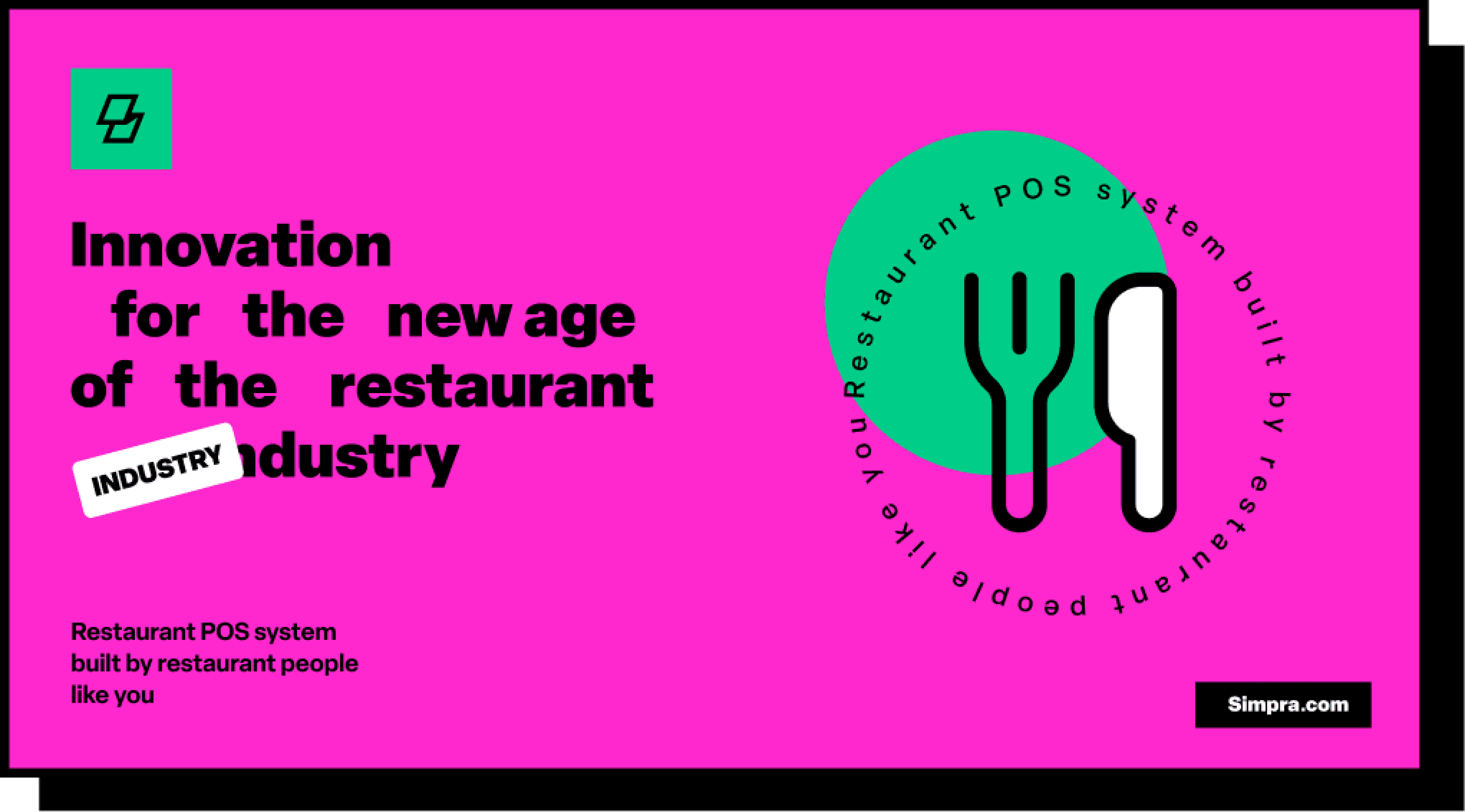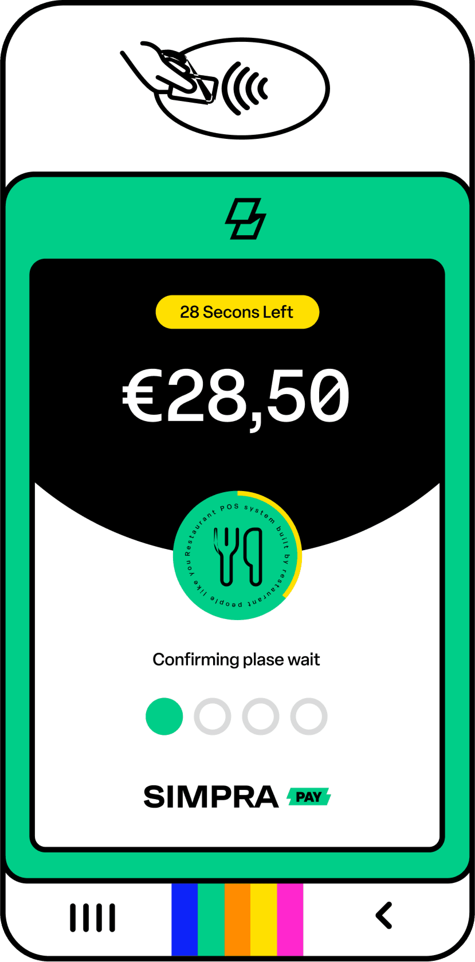 The logo represents the three primary services that Simpra offers: POS devices, contactless payments, and the bills.